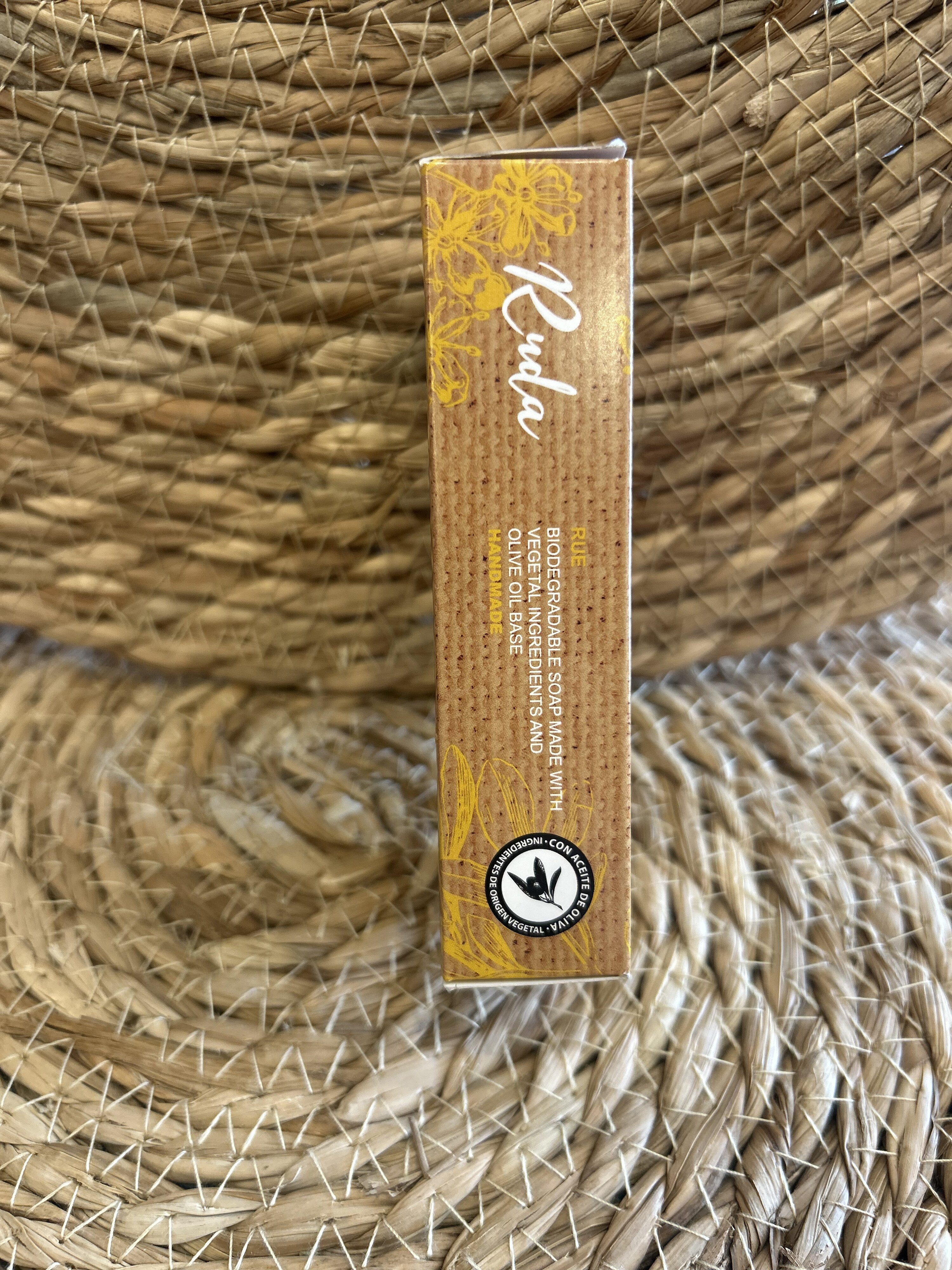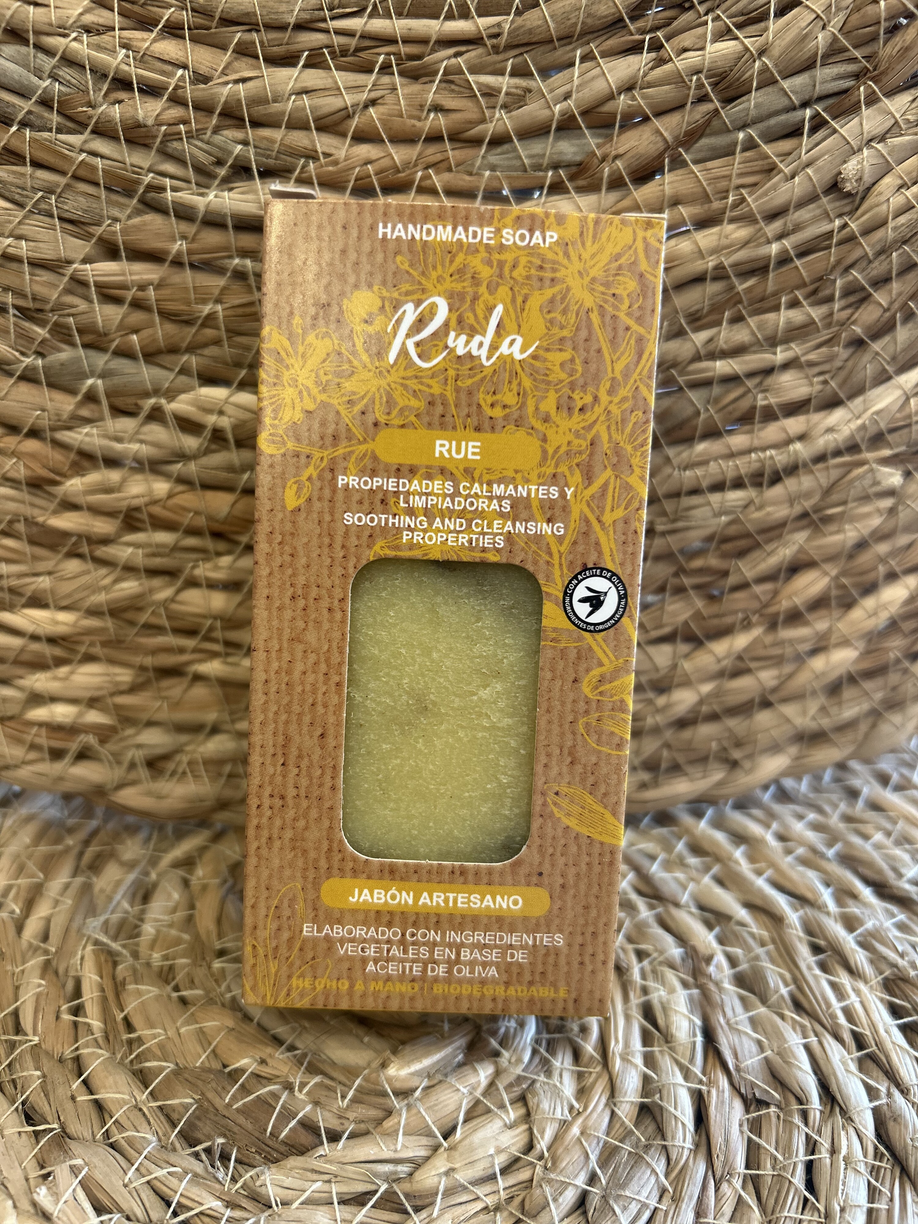 Jabón natural artesanal de Ruda, sin químicos ni fragancias artificiales.