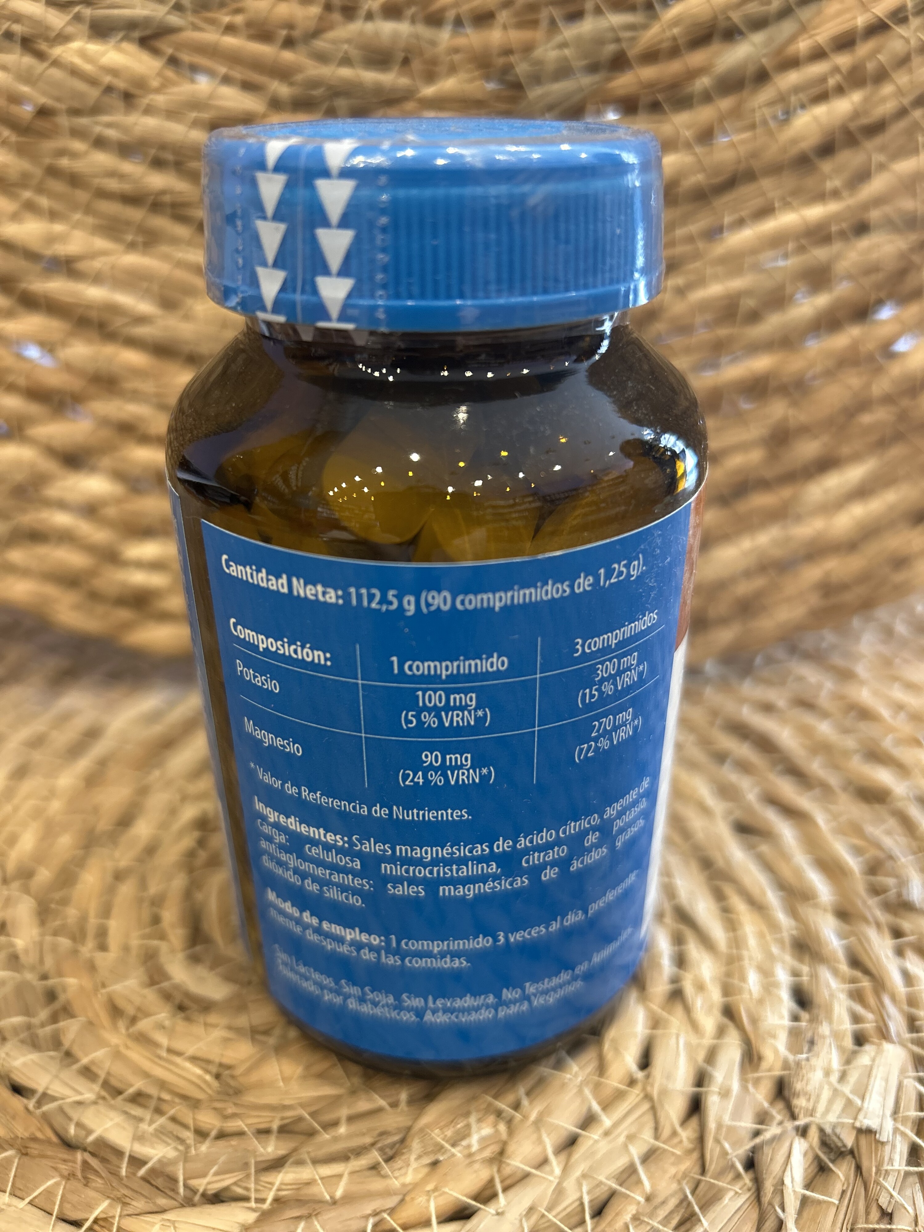 Ingredientes: sales magnésicas de ácido cítrico, agente de carga: celulosa microcristalina, citrato de potasio, antiaglomerantes: sales magnésicas de ácido grasos, dióxido de sílicio.