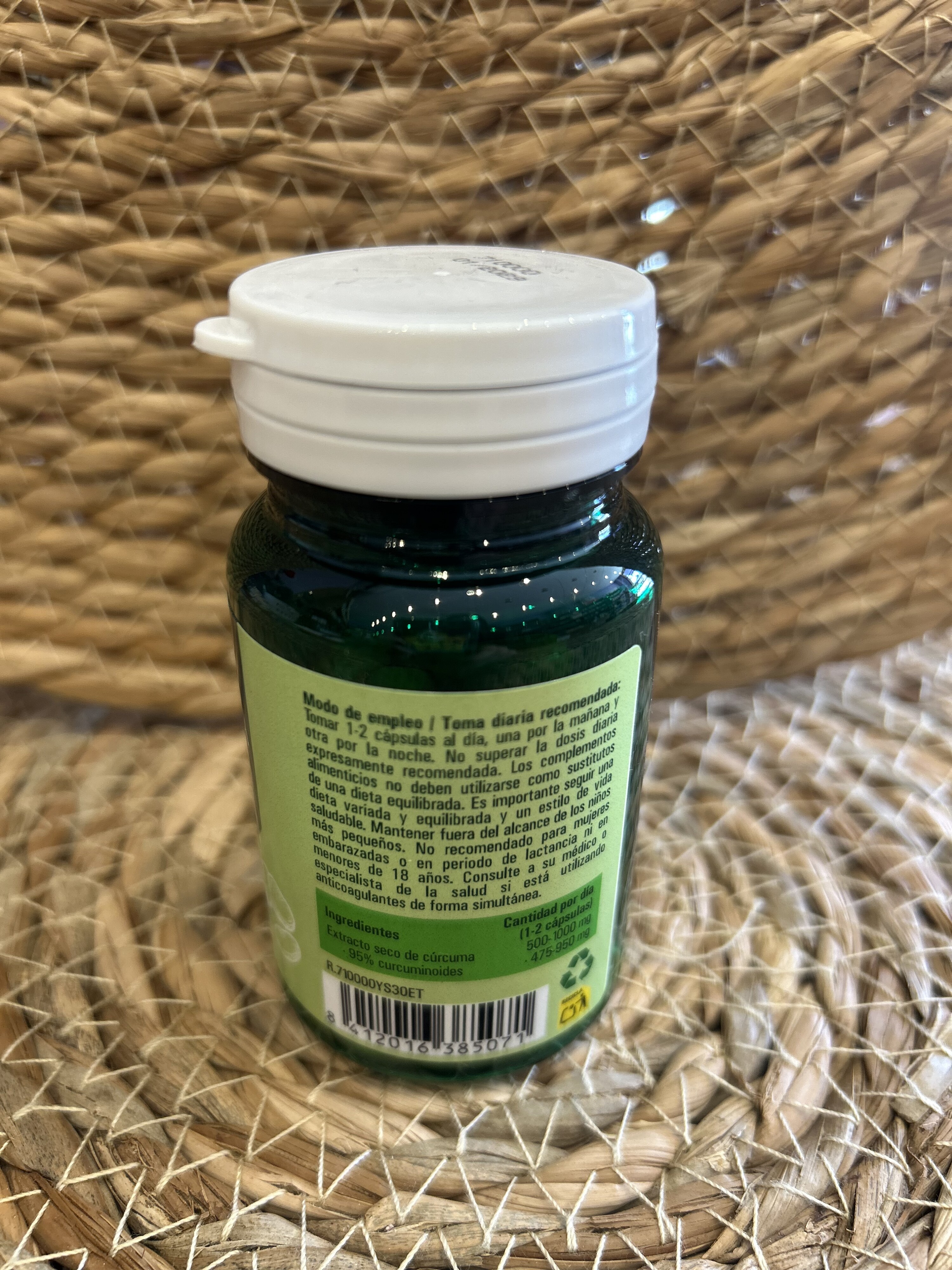 Las cápsulas de Cúrcuma Fitosol de Ynsadiet son un complemento alimenticio con propiedades antioxidantes y antiinflamatorias para el cuidado de las articulaciones y la digestión.