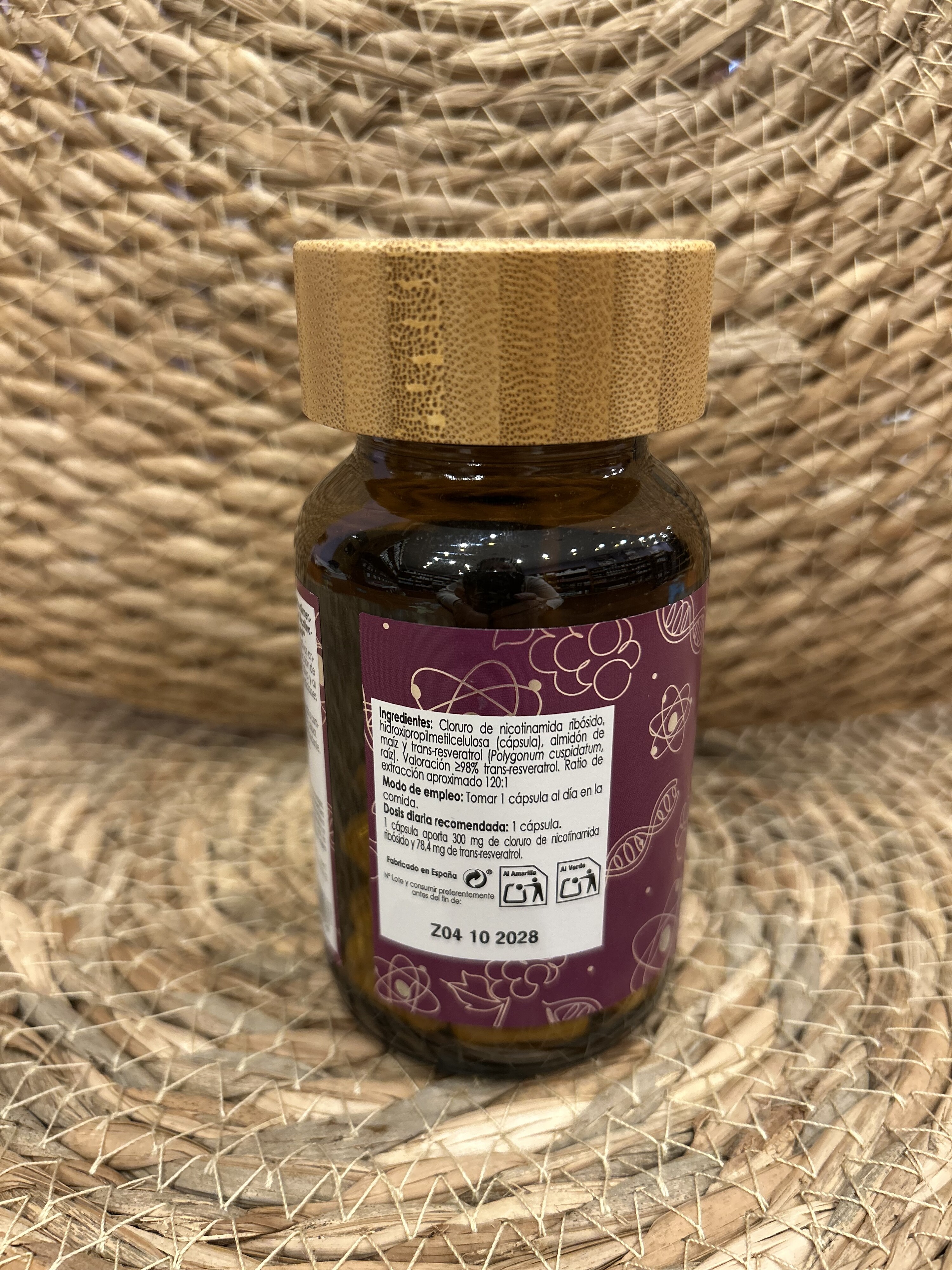 Dosis diaria recomendada: 1 capsula aporta 300mg de cloruro de nicotinamida ribósido y 78,4mg de trans-resveratrol.