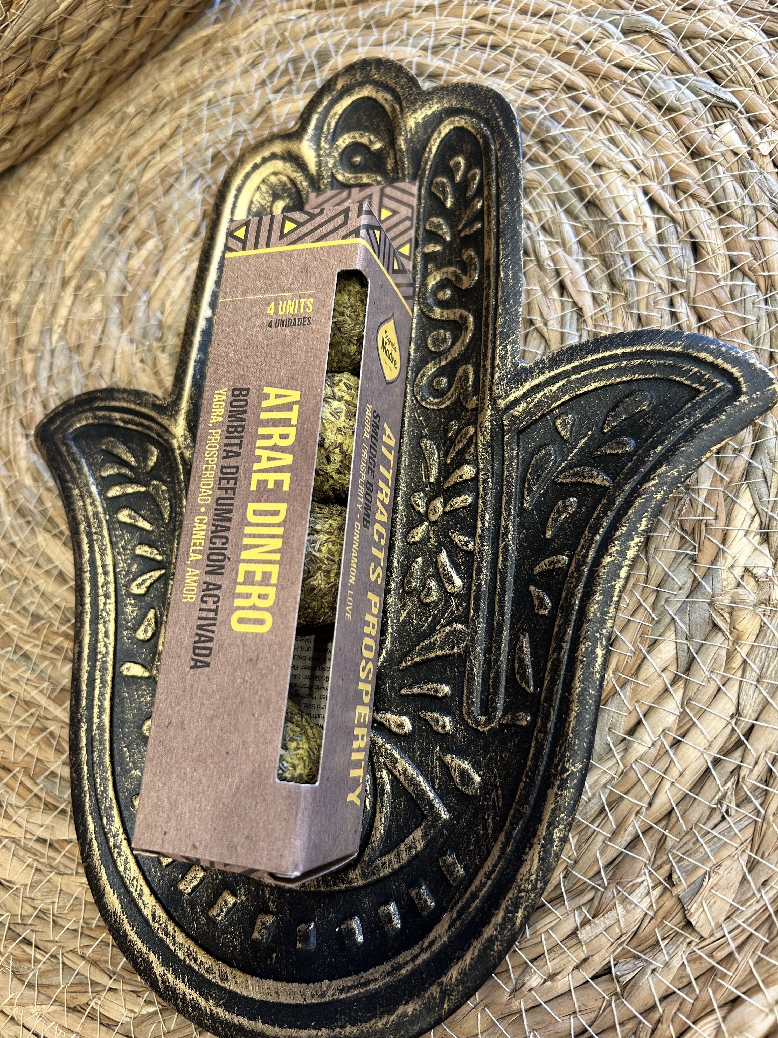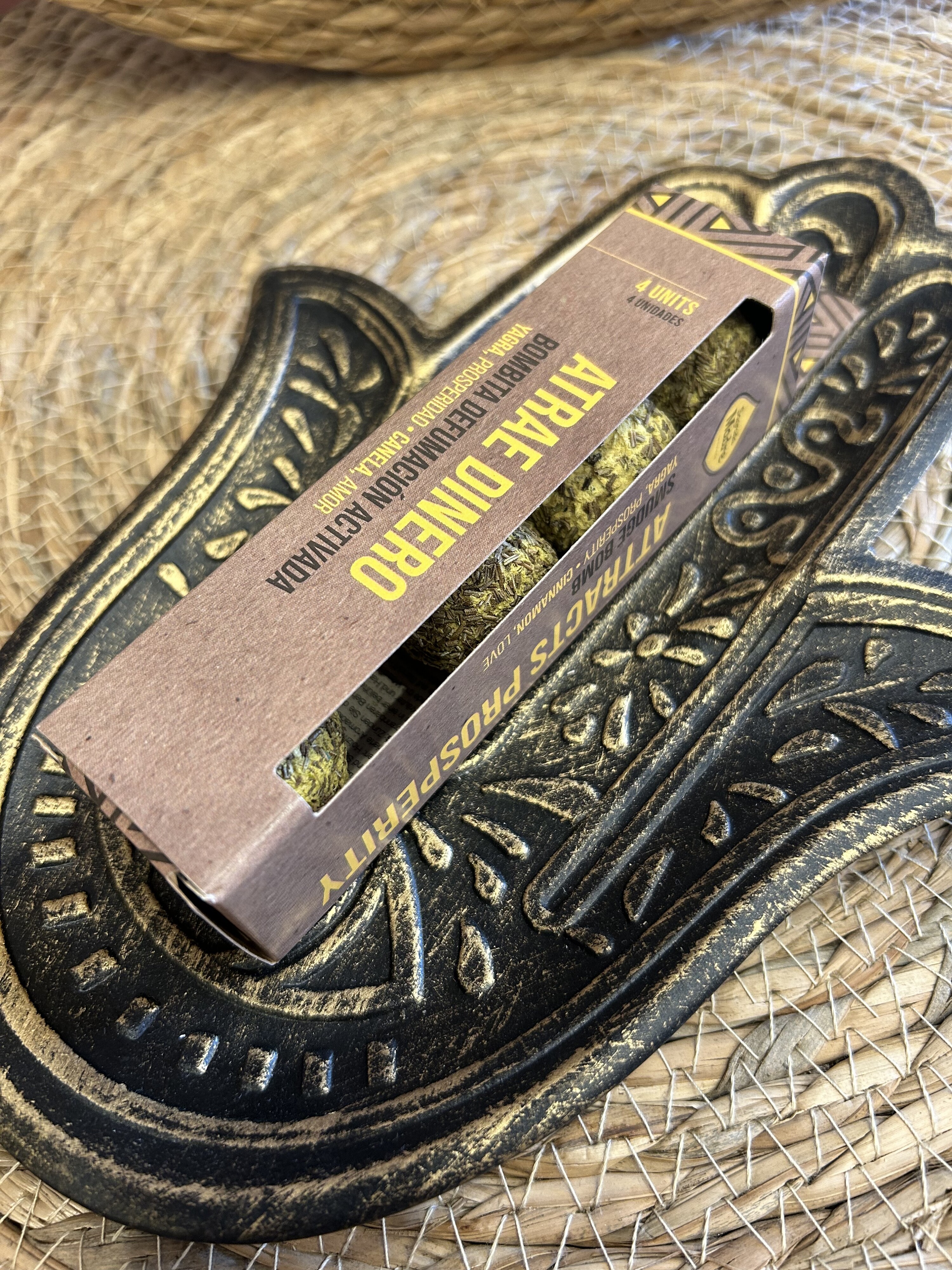 Cada caja contiene 4 bombitas de defumación activada Atrae Dinero.