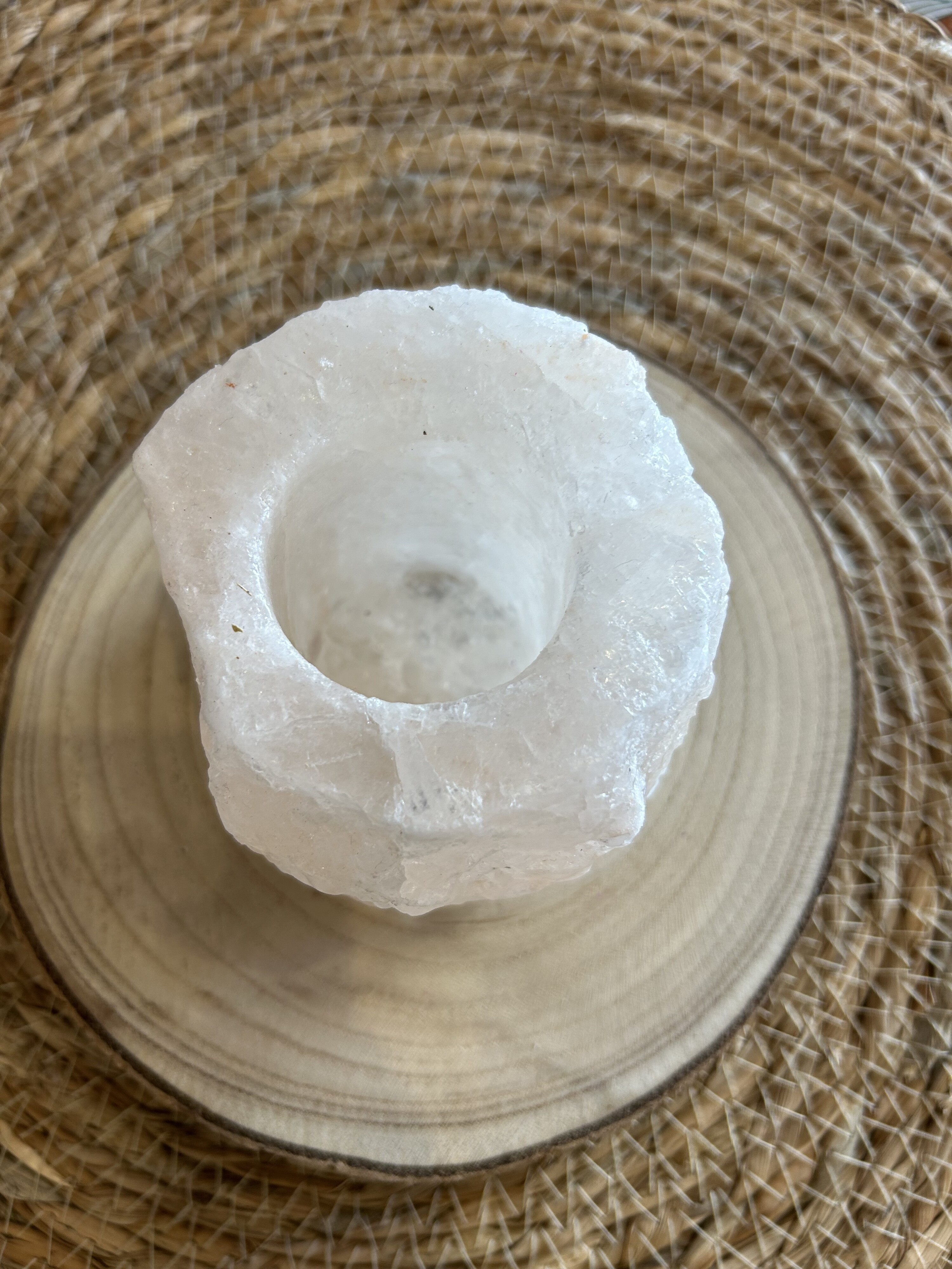 Porta velas rústico hecho con 100% con Sal del Himalaya Natural.